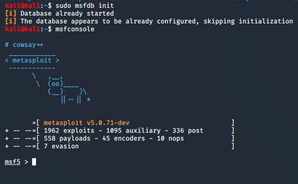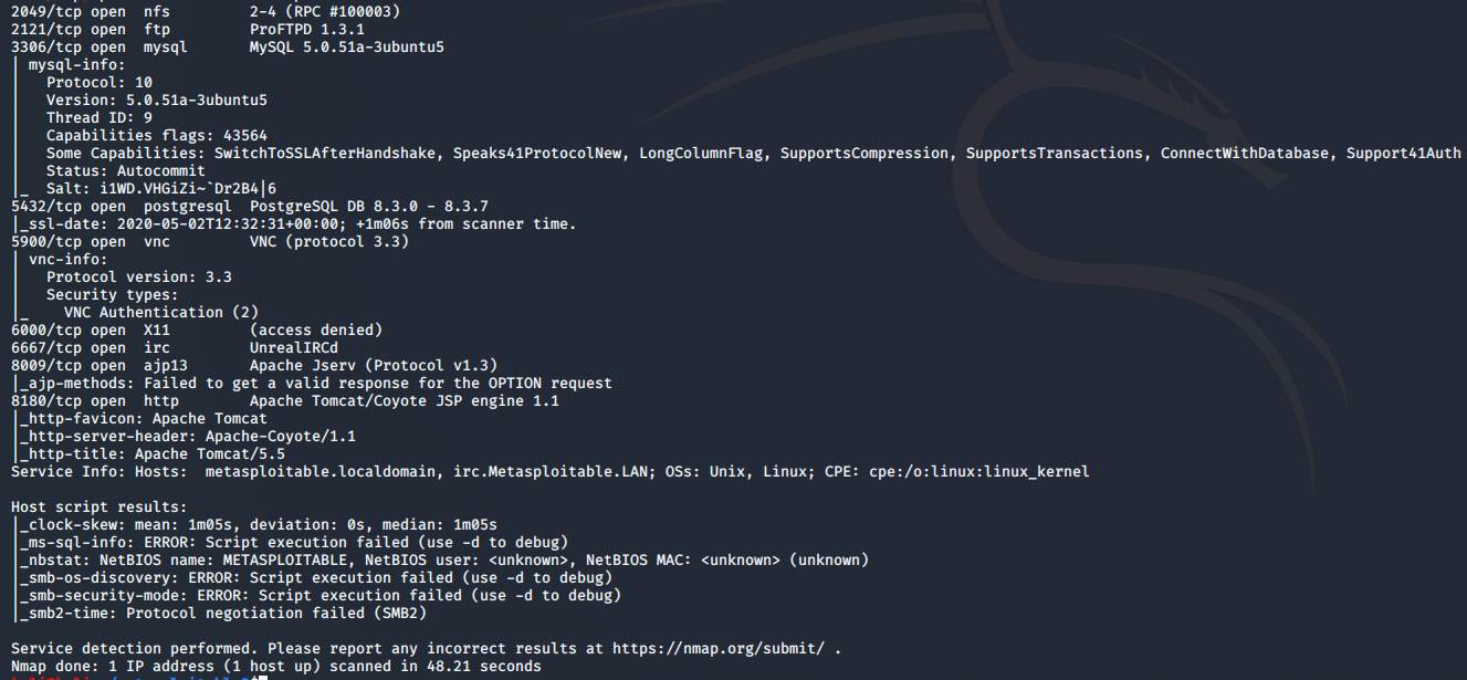Now that the IP is confirmed, we can run a db_nmap scan on the IP-address and view the services: