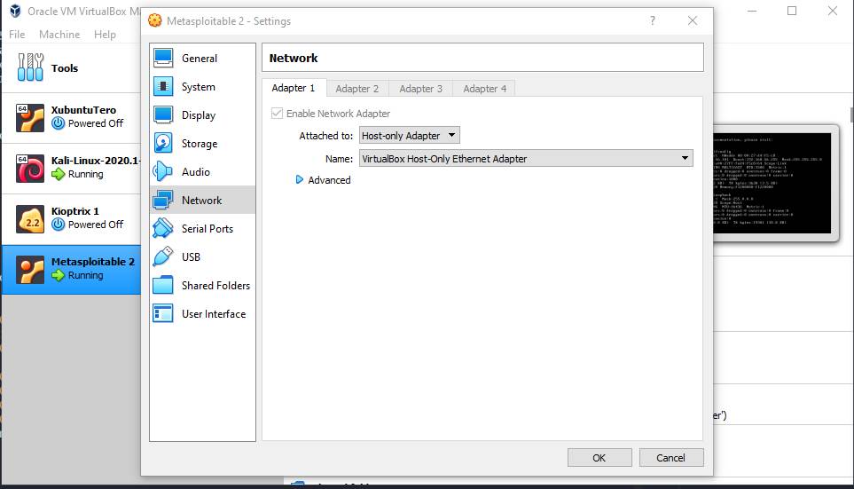 NOTE: The only difference is that I set Kioptrix to use the Host-Only