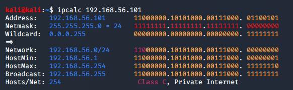 then Kioptrix ends in .103 and when running ipcalc to test it, I was correct: